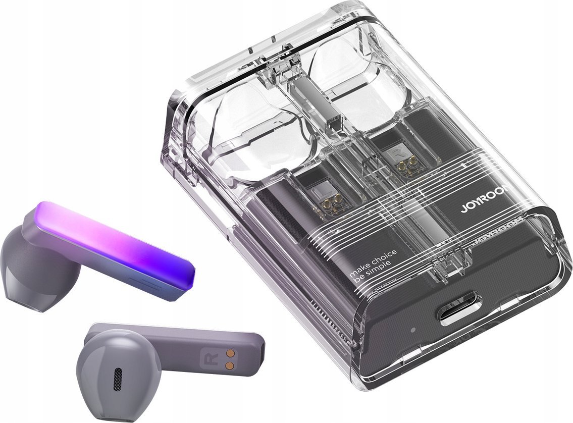 Słuchawki bezprzewodowe TWS Joyroom JR-TC1 IceLens Series to połączenie nowoczesnej technologii audio i zjawiskowego designu! Jeśli kochasz unikatowy styl - to wybór dla Ciebie. Dzięki zaawansowanej technologii Bluetooth 5.3 zapewniają stabilne i szybkie połączenie. Głośniki z membraną z biowłókien gwarantują czyste i mocne audio. Przezroczysta obudowa z przesuwną konstrukcją ułatwia obsługę, a intuicyjne sterowanie dźwiękiem sprawia, że każde używanie jest prawdziwą przyjemnością. Ze słuchawkami Joyroom JR-TC1 każdy moment przy muzyce staje się wyjątkowy.