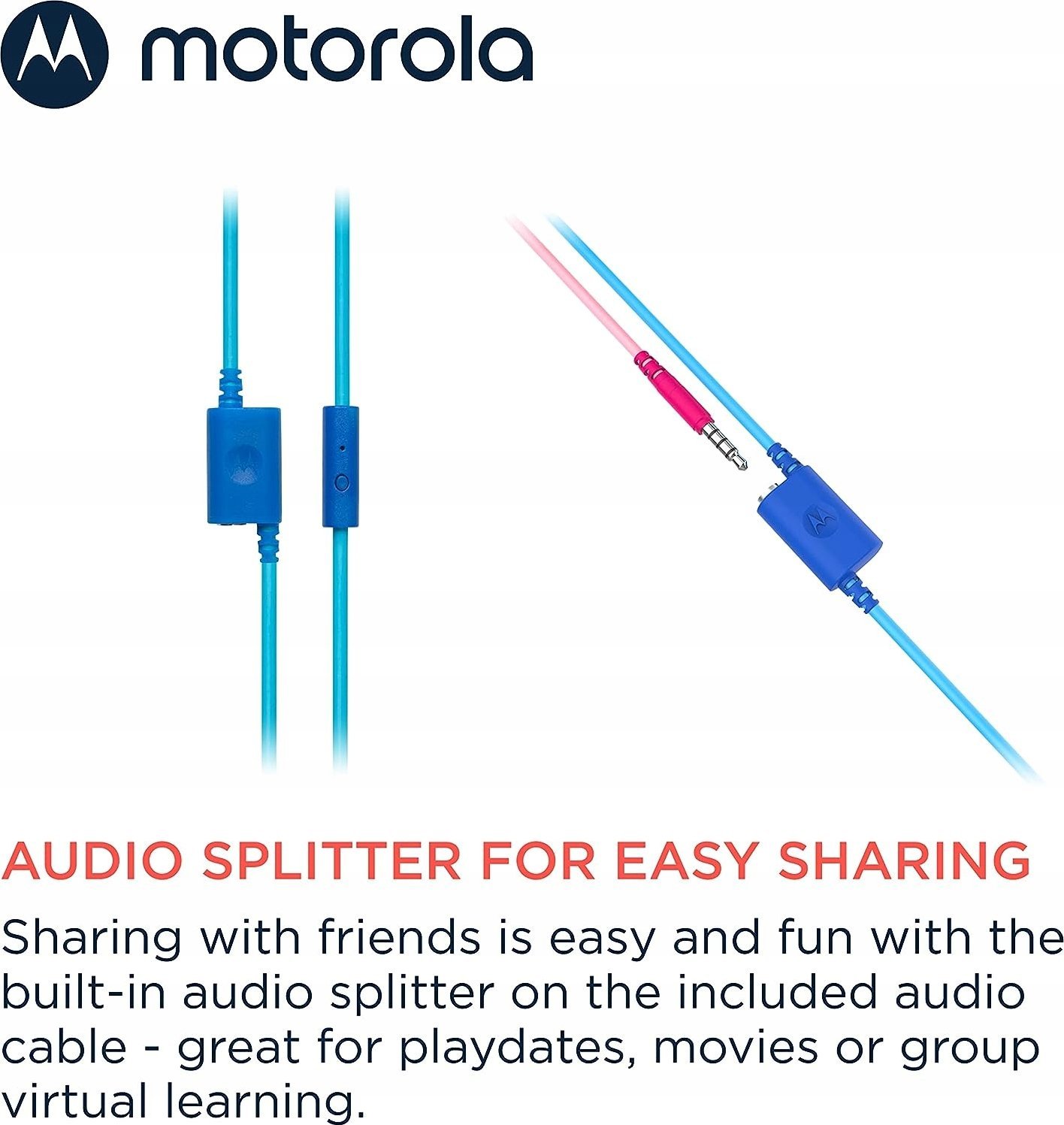 Pożegnaj splątane kable. MOTO JR300 jest wyposażony w Bluetooth i bezprzewodowy czas odtwarzania do 24 godzin. Funkcje umożliwiające prowadzenie rozmów w trybie głośnomówiącym, łatwe sterowanie za pomocą przycisków. Limit głośności 85 dB jest bezpieczny dla dzieci, a miękki wyściełany pałąk został zaprojektowany z myślą o wygodnym i regulowanym dopasowaniu dla dzieci w wieku 3+. Przetwornik głośnika: 30 mm Łączność: Bluetooth Maksymalny zasięg: do 10m Czas odtwarzania: 24 godziny Czas rozmów: 24 godziny Czas ładowania: 2 godziny LIMIT BEZPIECZNEJ GŁOŚNOŚCI DLA DZIECI Bezprzewodowe słuchawki MOTO JR300 zostały specjalnie zaprojektowane dla Twojego dziecka, aby zapewnić dziecku bezpieczeństwo podczas słuchania, zgodnie z zaleceniami WHO wynoszącymi 85 dB. ZABAWA MUZYCZNA NON STOP Do 24 godzin odtwarzania na jednym ładowaniu. Zawiera kabel audio 3,5 mm do użytku z urządzeniami nieobsługującymi Bluetooth. MIĘKKA I KOMFORTOWA KONSTRUKCJA Wyjątkowo miękki pałąk i poduszki nauszne zapewniają komfort noszenia przez wiele godzin Twojemu dziecku.