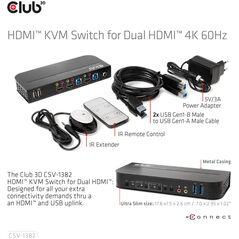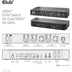 Διακόπτης δικτύου Club 3D Club3D - Διακόπτης, HDMI KVM Switch - Dual HDMI 4K 60Hz