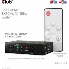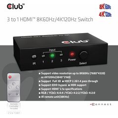 Διακόπτης HDMI Club 3D Club3D 3 Είσοδοι -> 1 Έξοδος 8K60Hz UHD λιανική