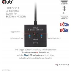 Διακόπτης Club 3D Club3D HDMI 2-σε-1 αμφίδρομος 8K60Hz/4K120Hz UHD λιανικής