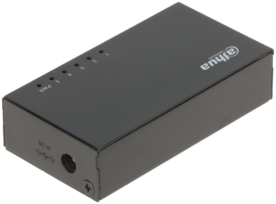 Πρόσβαση τεχνολογίας Dahua PFS3005-5ET-V2. Τύπος διακόπτη: Μη διαχειριζόμενος, Διακόπτης πολλαπλών επιπέδων: L2. Τύπος θυρών RJ-45 βασικής μεταγωγής Ethernet: Γρήγορο Ethernet (10/100), Βασική μεταγωγή RJ-45 Αριθμός θυρών Ethernet: 5. Μέγεθος πίνακα διευθύνσεων: 2000 καταχωρήσεις, Εύρος ζώνης δρομολόγησης/μετάβασης: 1 Gbit/s. Τάση εισόδου DC: 5 V. Επιτοίχια τοποθέτηση/προβολή οροφής