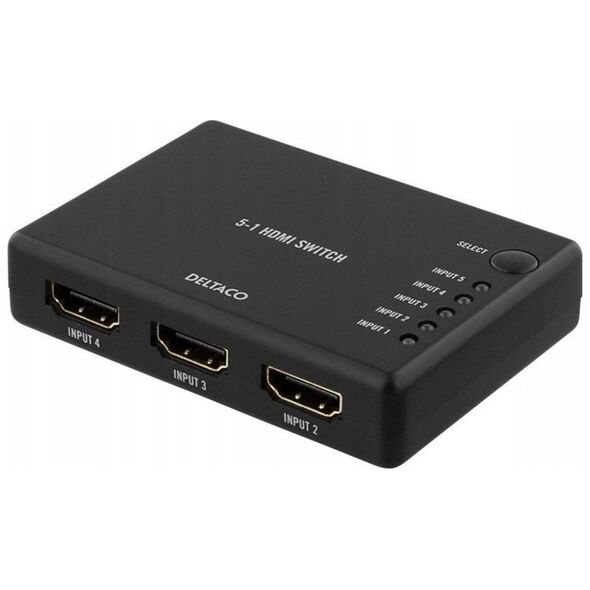 Deltaco HDMI διακόπτης DELTACO 5in-1out, 4k in 60Hz, 7.1 ήχος, Ultra HD, μαύρο / HDMI-7043