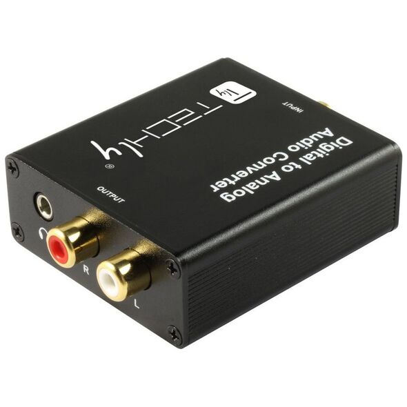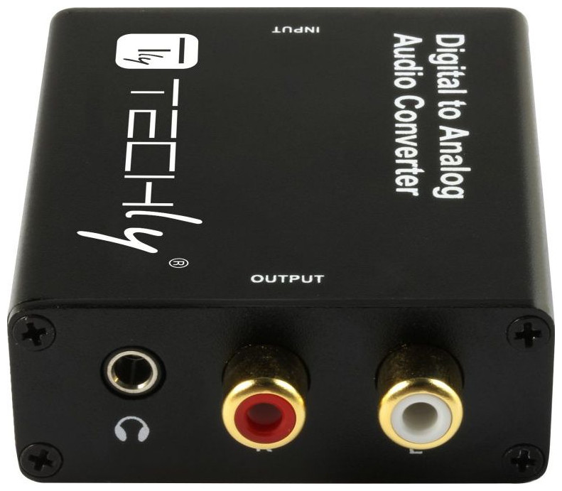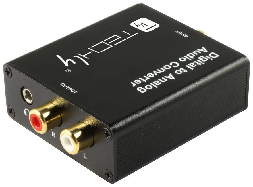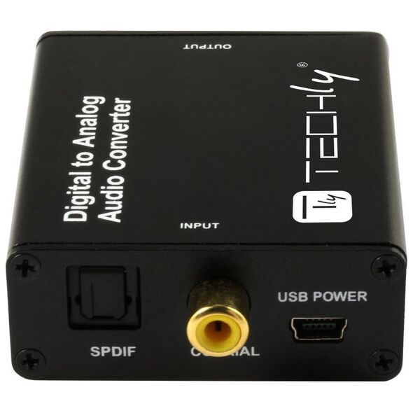 Το Techly IDATA SPDIF-9 ψηφιακό σε αναλογικό DAC σάς επιτρέπει να μετατρέπετε γρήγορα και εύκολα ψηφιακό ήχο 2 καναλιών από ομοαξονική είσοδο ή οπτική είσοδο Toslink (SPDIF) σε αναλογικό ήχο μέσω εξόδων ήχου RCA και 3,5 mm. Χάρη στον μετατροπέα, είναι δυνατή η αποστολή ενός σήματος ήχου, για παράδειγμα, από μια τηλεόραση μέσω μιας οπτικής υποδοχής σε έναν ενισχυτή ή σετ ηχείων με υποδοχή RCA ή τυπικά ακουστικά με υποδοχή ήχου 3,5 mm. Το Techly DAC επιτρέπει την ταυτόχρονη χρήση θυρών RCA L/R και εξόδου ήχου 3,5 mm.