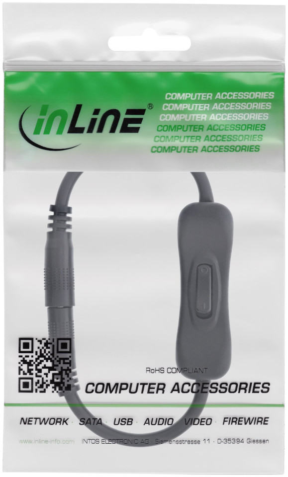 Καλώδιο DC InLine® με διακόπτη, DC ST/BU 3,5x1,35mm, AWG 18, μαύρο, 0,20m