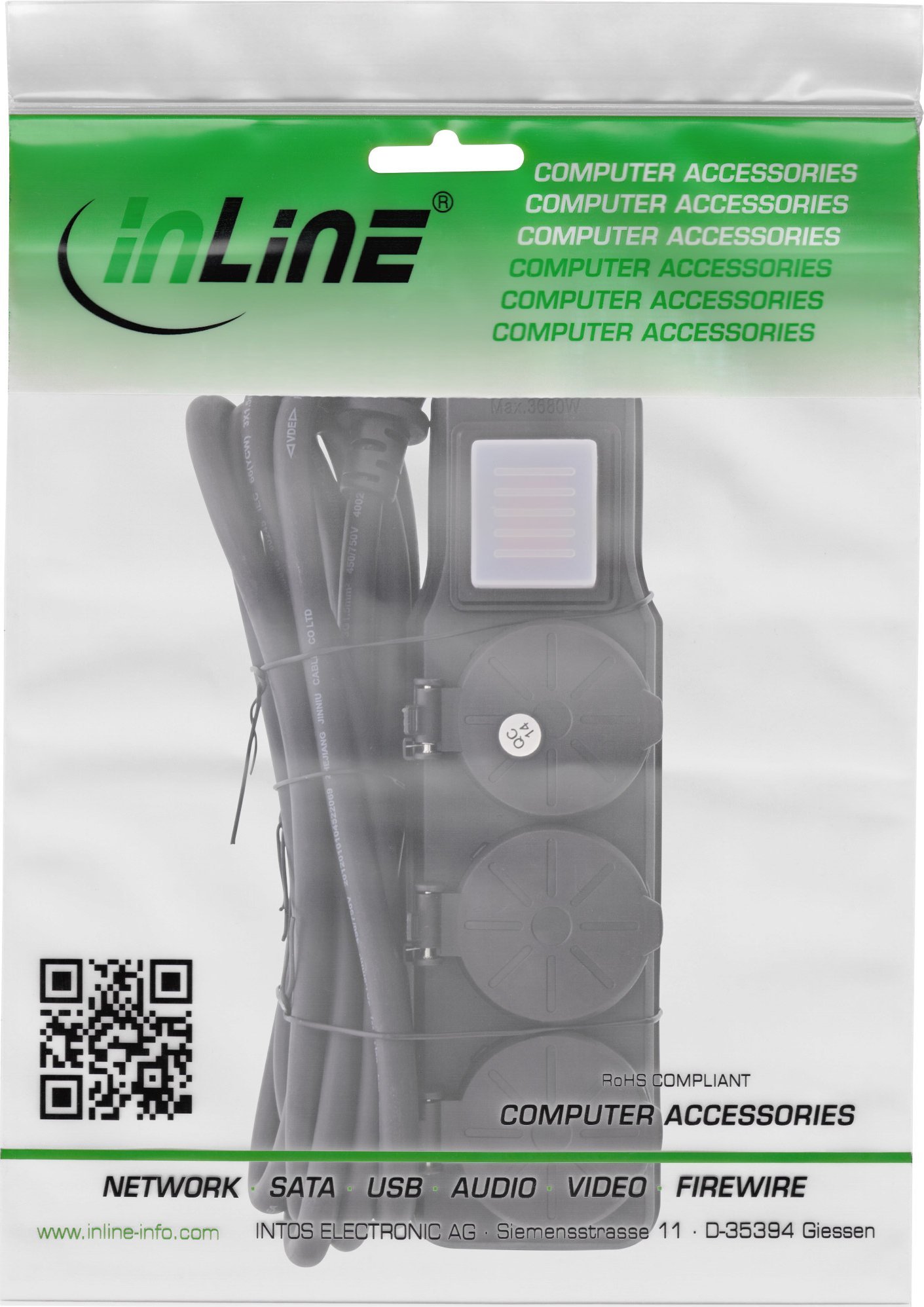 InLine® Εξωτερική πολύπριζο, 3 υποδοχές Schutzkontakt, IP44, με διακόπτη, 3m