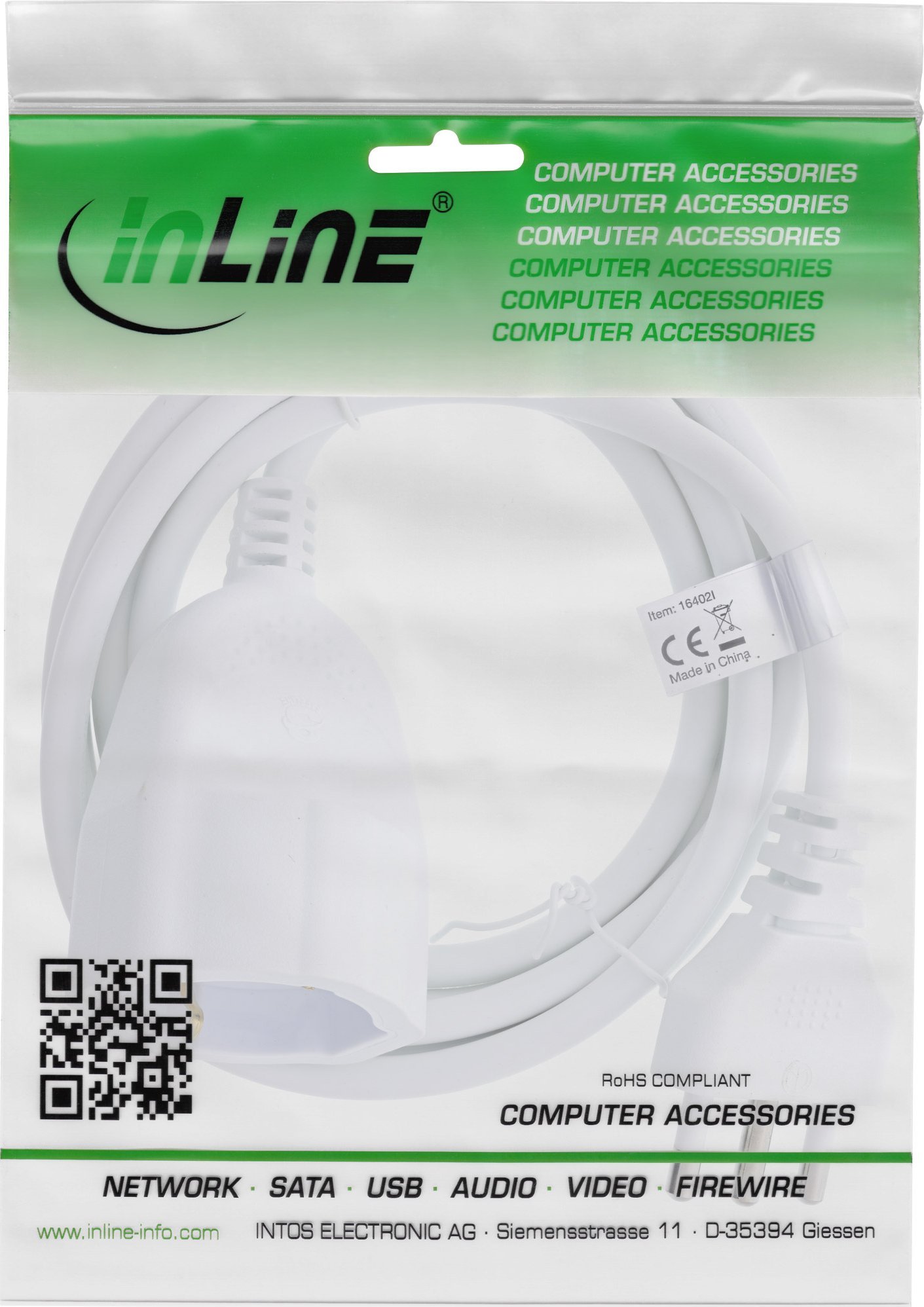 Καλώδιο επέκτασης ρεύματος InLine® Schutzkontakt ITALIEN Stecker L / Buchse F, λευκό, 10m