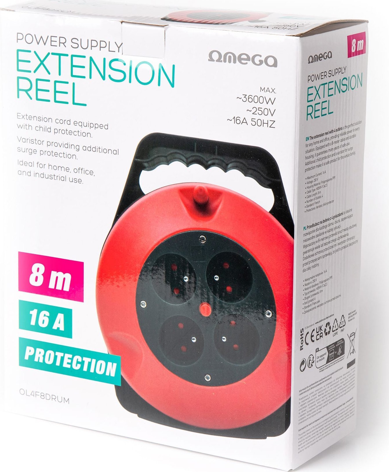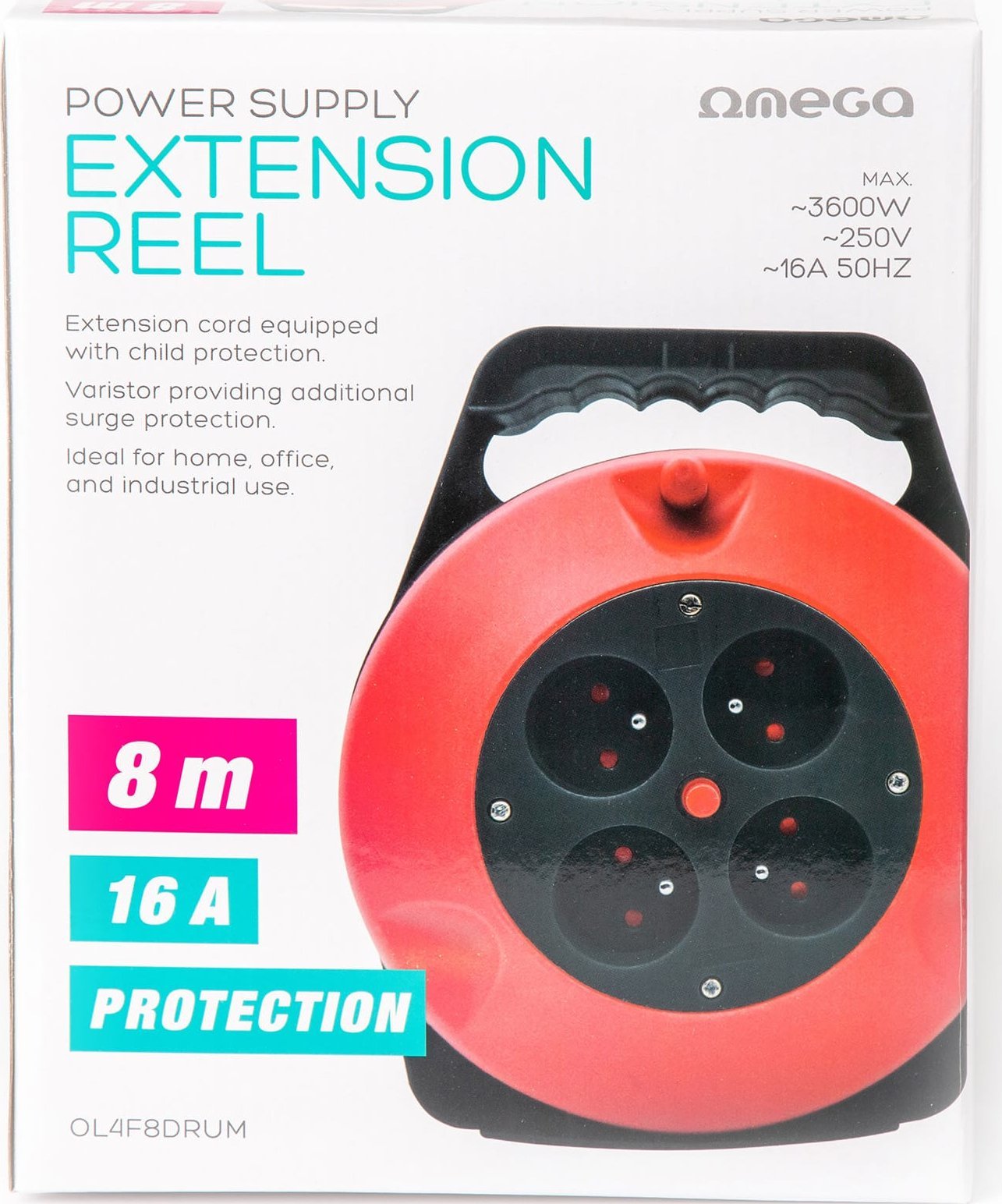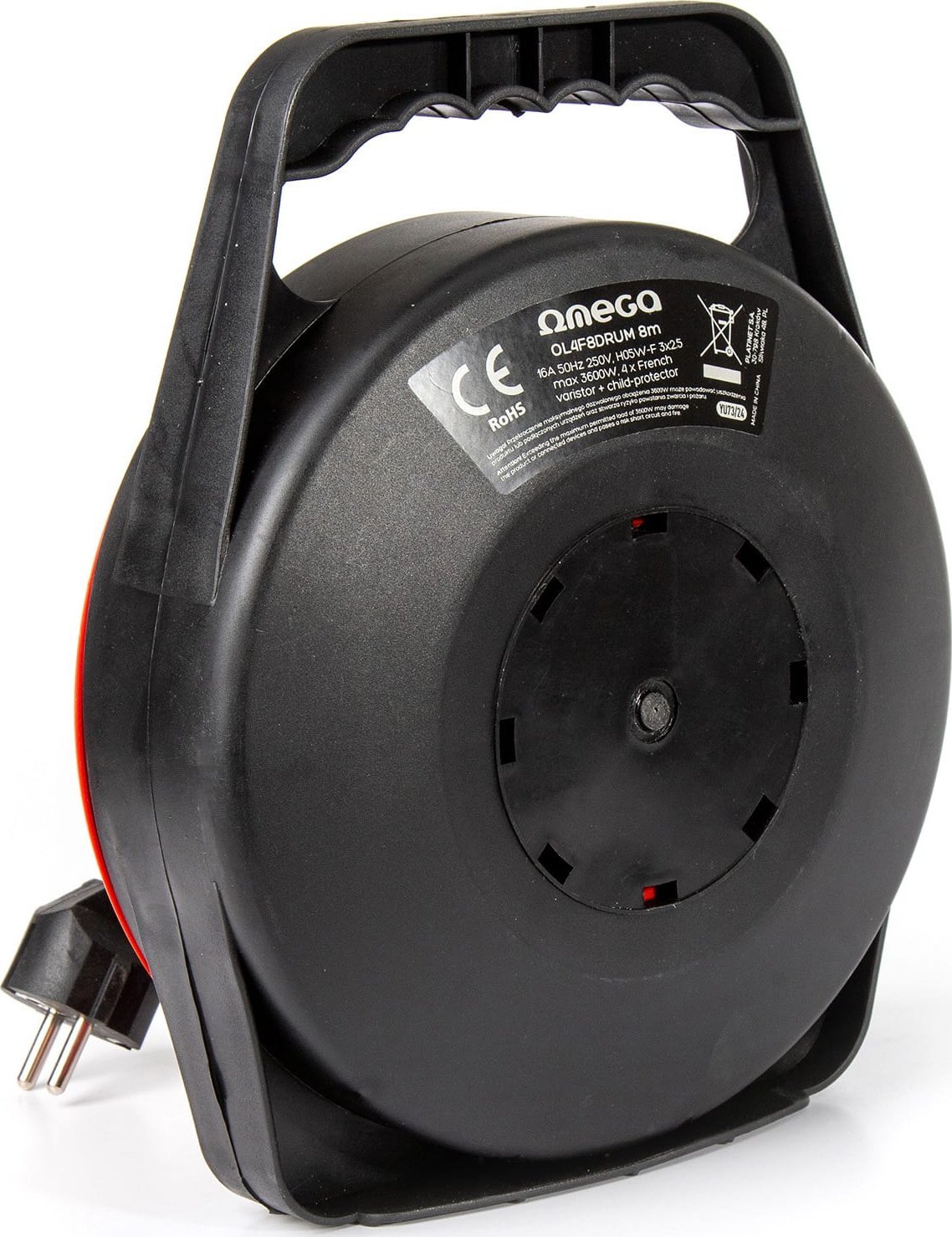 Καλώδιο επέκτασης 230V 8m 16A μαύρο σε τύμπανο 4 υποδοχές PLATINET (46090)