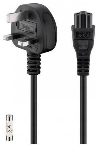 - Kabel zasilający z 3-biegunową wtyczką dla Wielkiej Brytanii (typ G, BS 1363) i wtyczką z kontaktem uziemiającym