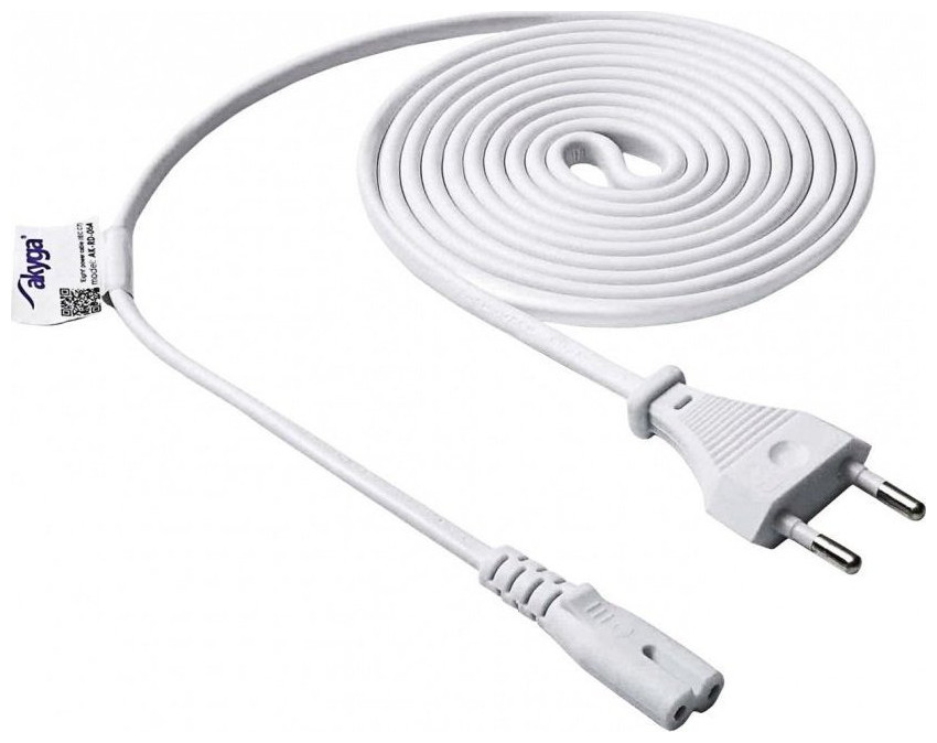 Καλώδιο τροφοδοσίας Akyga Καλώδιο τροφοδοσίας Akyga AK-RD-06A οκτάρι CCA CEE 7/16 / IEC C7 1,5 m λευκό