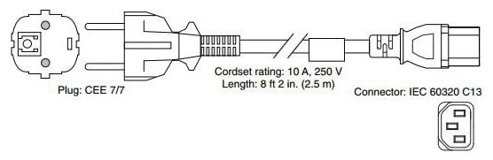 Τροφοδοτικό τύπου CEE 7/ 7 (SCHUKO) - αρσενικόΣυνδετήρας (άλλη πλευρά) Τροφοδοτικό τύπου IEC 320 EN 60320 C13