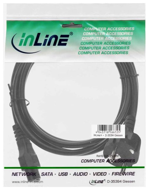 Καλώδιο τροφοδοσίας InLine Type F G EU - Φορητός υπολογιστής "Mikey Mouse" Μαύρο ίσιο καλώδιο τροφοδοσίας από τη γερμανική μάρκα InLine για φορητό υπολογιστή κατασκευασμένο από υλικό υψηλής ποιότητας Τεχνικά δεδομένα: έγχρωμο μαύρο μήκος 5 m{Χρώμα} Μαύρο. {Χρώμα} Μαύρο. {Μήκος καλωδίου [m]} 5 . {Μήκος καλωδίου [m]} 5 . {Τύπος συνδέσμων} Schuko - C5. {Τύπος συνδέσμων} Schuko - C5. {Γωνιακό βύσμα} Αρ. {Angle Plug} Αρ