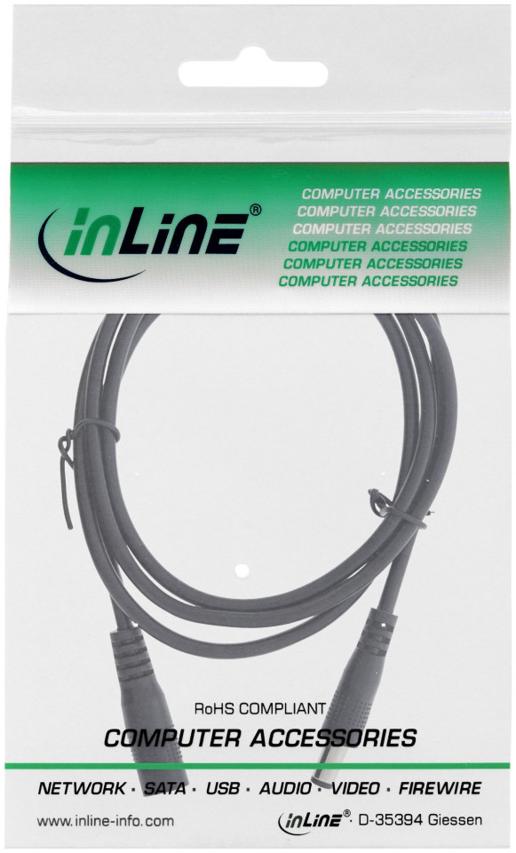 InLine 26855B. Μήκος καλωδίου: 0,5 m, Βύσμα 1: Τύπος A (5,5 mm, 2,1 mm), Σύνδεσμος 2: Τύπος A (5,5 mm, 2,1 mm)