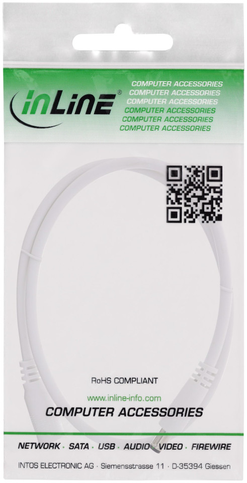 Καλώδιο επέκτασης InLine InLine® DC, αρσενικό/θηλυκό βύσμα DC 5.5x2.5mm, AWG 18, λευκό, 5m