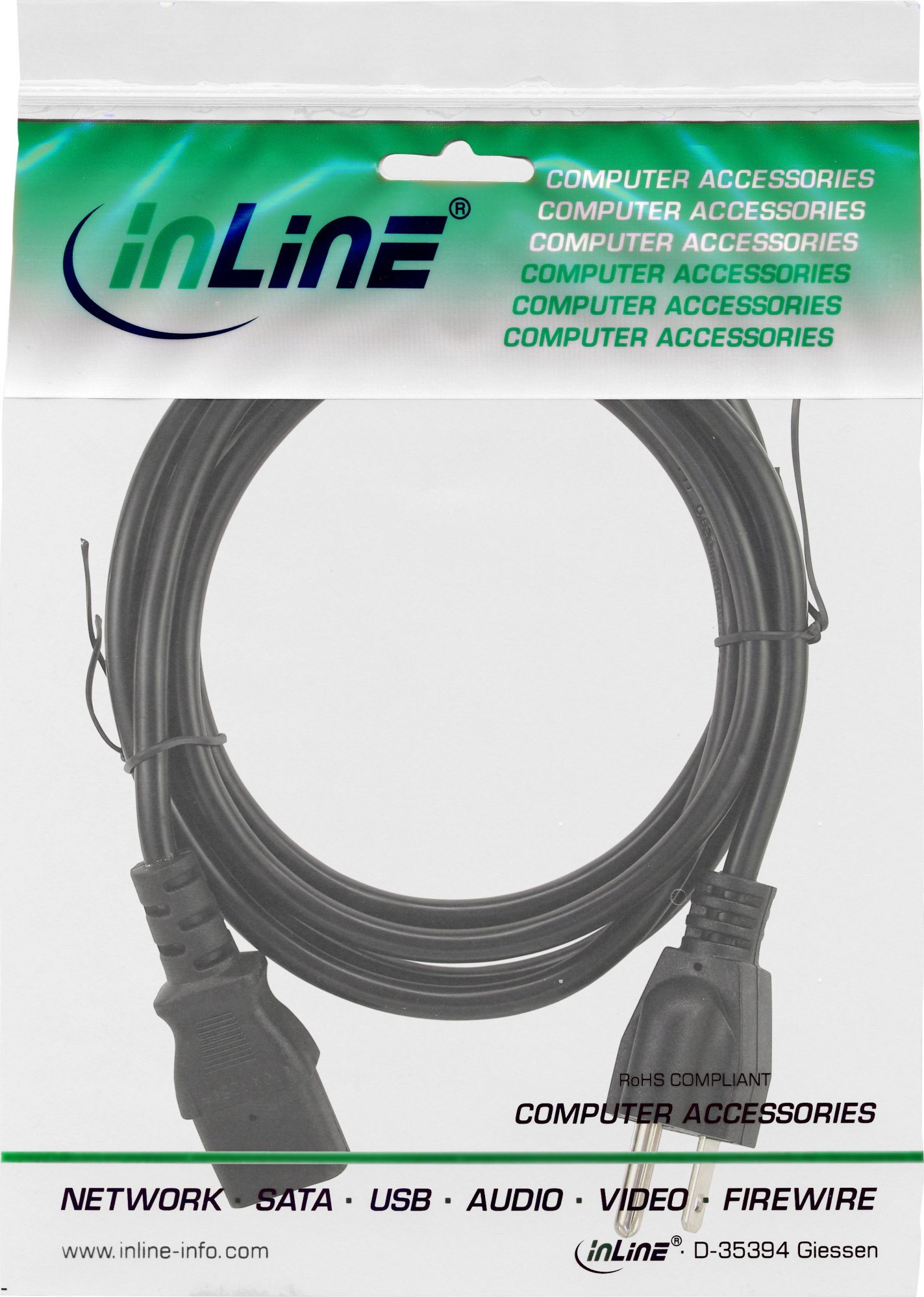 Καλώδιο τροφοδοσίας InLine InLine® Power cable, power plug USA to 3pin IEC C13 connector, μαύρο, 5.0m