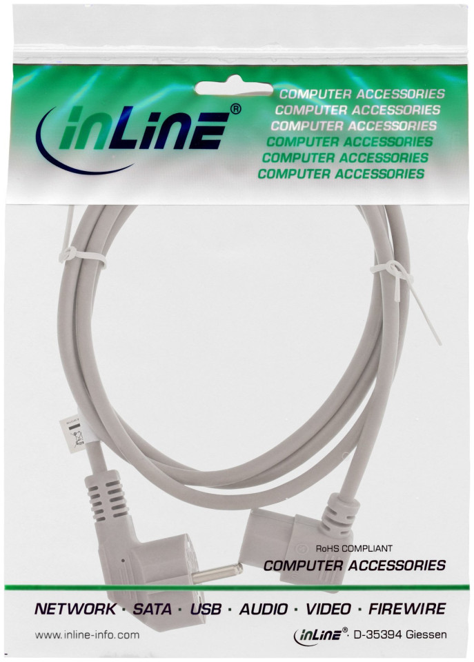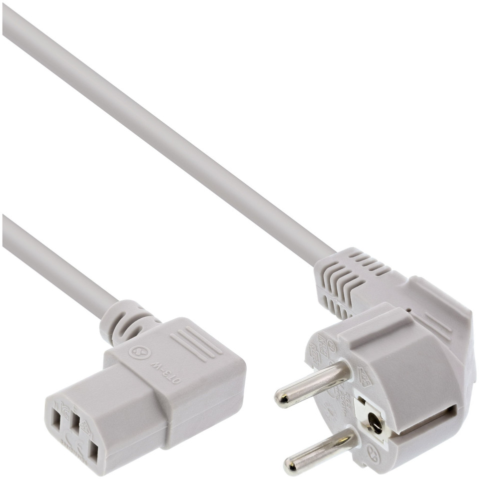 Καλώδιο τροφοδοσίας InLine InLine® Power cable, Schutzkontakt CEE7/7 γωνιακό σε 3pin IEC-C13 γωνιακό, γκρι, 1.0m