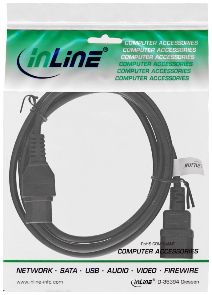 Καλώδιο τροφοδοσίας InLine InLine Προέκταση καλωδίου τροφοδοσίας, σύνδεση IEC-C15 ευθεία σε IEC-C14 ευθεία, 0,5 m, μαύρο