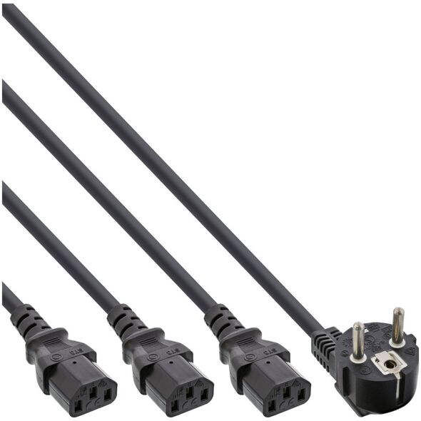 Καλώδιο τροφοδοσίας InLine InLine® Y-Power Cable 1x Type F German Plug to 3x IEC Plug μαύρο 3m