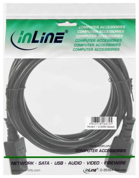 Καλώδιο τροφοδοσίας InLine επέκταση για υπολογιστή - 3 Pin IEC C13 - C14 αρσενικό - θηλυκό μαύρο 1.8m (16632)