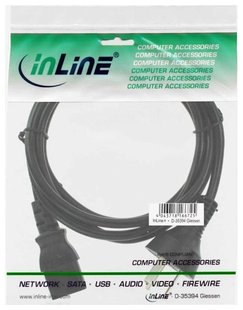 Καλώδιο τροφοδοσίας InLine Τύπος Ι Κίνα - Υποδοχή IEC 1,8m Καλώδιο τροφοδοσίας της γερμανικής μάρκας InLine για σύνδεση ηλεκτρικών συσκευών με πρίζα IEC σε πρίζα Κίνας. Αυτό είναι ένα καλώδιο CCC 3 ακίδων{Χρώμα} Μαύρο. {Χρώμα} Μαύρο. {Μήκος καλωδίου [m]} 1,8 . {Μήκος καλωδίου [m]} 1,8 . {Type of connectors} Τύπος I - C13. {Type of connectors} Τύπος I - C13. {Γωνιακό βύσμα} Αρ. {Angle Plug} Αρ