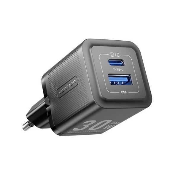 Καλώδιο τροφοδοσίας Vention Φορτιστής δικτύου, Vention, FEQB0-EU, USB-C, USB-A, 30W/30W, GaN (μαύρη)