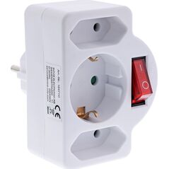 Προσαρμογέας πρίζας InLine®, βύσμα SK σε 2xEuro+1x SK, με διακόπτη, λευκό