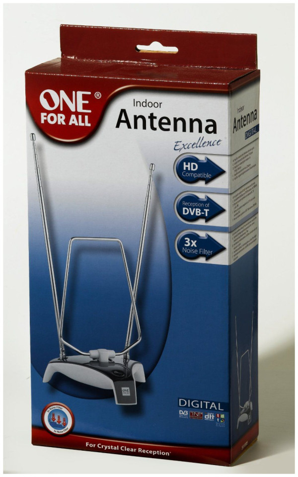 Εσωτερική κεραία OneForAll για κρυστάλλινη λήψη τηλεοπτικών προγραμμάτων DVB-T, αναλογικών UHF και FM καθώς και σημάτων ραδιοφώνου FM (απαιτείται προσαρμογέας Η κεραία μπορεί να περιστραφεί και να γείρει για την καλύτερη δυνατή λήψη). Χάρη στη ματ και γυαλιστερή μαύρη επιφάνειά της, η κεραία ταιριάζει τέλεια σε τηλεοράσεις LCD/plasma. Διαθέτει σύστημα προστασίας από υπερτάσεις.{Antenna Type} Ενεργό . {Antenna Type} Ενεργό . {Σκοπός κεραίας} Τηλεόραση . {Σκοπός κεραίας} Τηλεόραση . {UHF} ναι. {UHF} ναι. {Κεραία} Ειρηνικό . {Κεραία} Ειρηνικό . {Σκοπός κεραίας} Ραδιόφωνο . {Σκοπός κεραίας} Ραδιόφωνο . {VHF} ναι. {VHF} ναι. {FM} ναι. {FM} ναι. {Amplifier gain adjustment} ναι . {Amplifier gain adjustment} ναι . {Άλλα} Δύο τηλεσκοπικές κεραίες. {Άλλα} Δύο τηλεσκοπικές κεραίες. {Other} Υποστήριξη Full HD. {Other} Υποστήριξη Full HD. {Power} Τροφοδοτικό . {Power} Τροφοδοτικό . {Σύστημα μείωσης θορύβου} ναι. {Σύστημα μείωσης θορύβου} ναι. {Περιλαμβανόμενα αξεσουάρ} Καλώδιο κεραίας. {Περιλαμβανόμενα αξεσουάρ} Καλώδιο κεραίας. {Χρώμα} Μαύρο και ασημί. {Χρώμα} Μαύρο και ασημί. {Περιλαμβανόμενα αξεσουάρ} Μετασχηματιστής AC. {Περιλαμβανόμενα αξεσουάρ} Μετασχηματιστής AC. {Άλλα} Λήψη ψηφιακών και αναλογικών τηλεοπτικών σημάτων. {Άλλα} Λήψη ψηφιακών και αναλογικών τηλεοπτικών σημάτων. {Τηλεοπτικά κανάλια} 1-69 . {Τηλεοπτικά κανάλια} 1-69 . {Άλλο} DAB . {