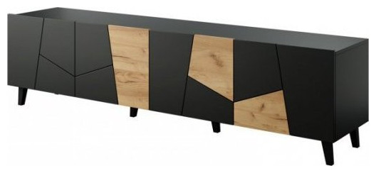 Cama Meble Ντουλάπι RTV ETNA 200x42x52 μαύρο ματ + craft δρυς