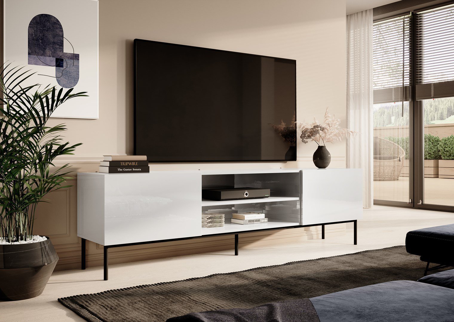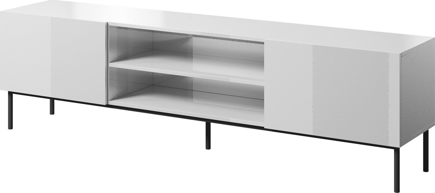 Cama Meble Ντουλάπι RTV SLIDE 200K σε μαύρο πλαίσιο από ατσάλι 200x40xH57 όλο σε λευκή γυαλάδα