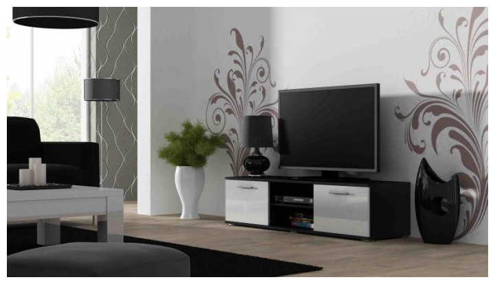 Cama Meble Ντουλάπι RTV SOHO 140 μαύρο/ λευκό γυαλιστερό