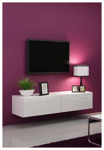 Cama Meble Ντουλάπι RTV VIGO '140' 30/140/40 λευκό/λευκό γυαλιστερό