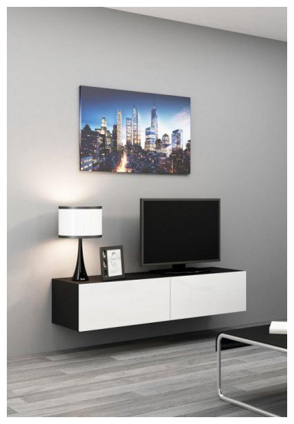 Cama Meble Ντουλάπι RTV VIGO '140' 30/140/40 μαύρο/λευκό γυαλιστερό