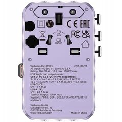 Προσαρμογέας Ταξιδιού Verbatim EU/UK/US GaN 2xUSB-C/2xUSB-A/1xUSB-C PD 100W μωβ 30193