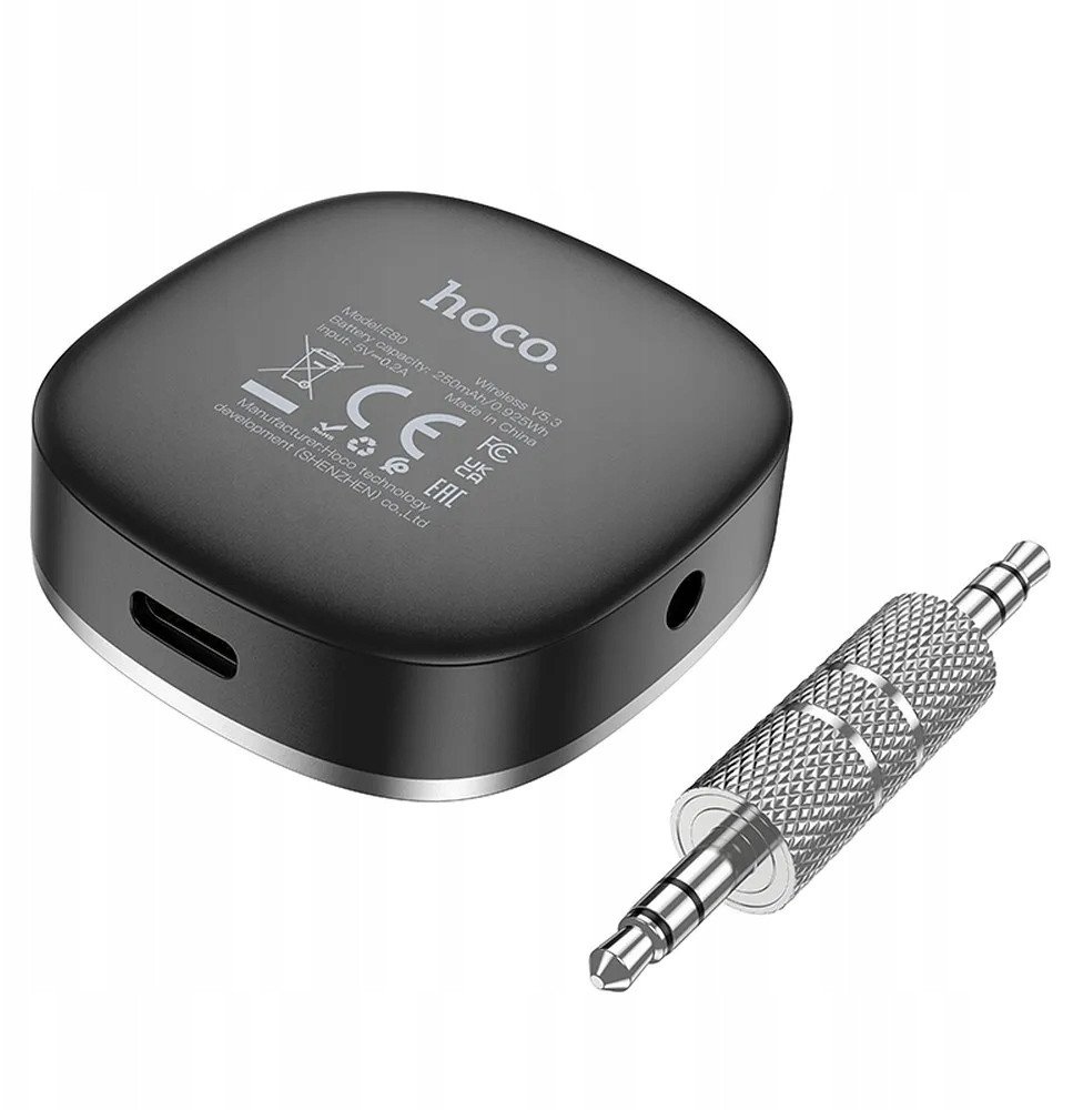 Προσαρμογέας AUX bluetooth Jack 3,5 mm Hoco με οθόνη E80 μαύρο