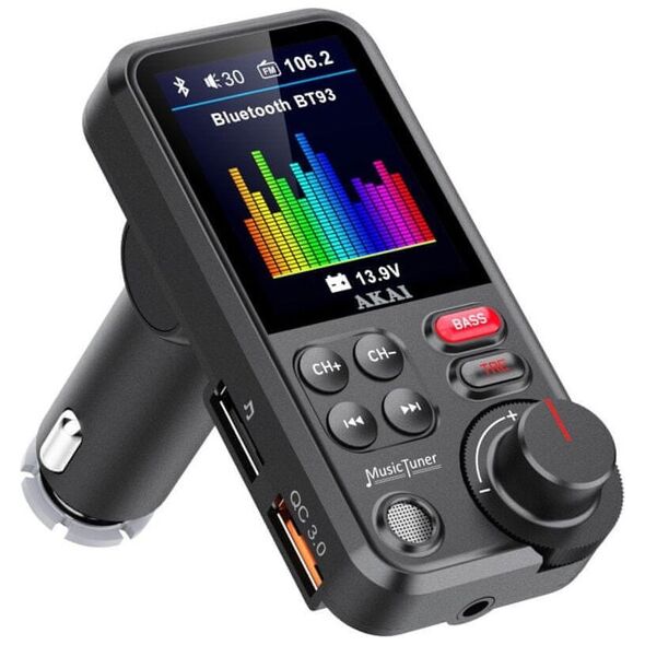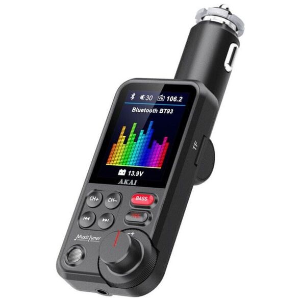Ο πομπός Akai σάς επιτρέπει να μεταδίδετε ήχους από κινητές συσκευές εξοπλισμένες με Bluetooth. Δεν χρειάζεται να χρησιμοποιείτε το τηλέφωνό σας, να χρησιμοποιείτε την είσοδο USB ή την υποδοχή κάρτας Micro SD και να ακούτε την αγαπημένη σας μουσική ενώ ταξιδεύετε. Χάρη στο ενσωματωμένο μικρόφωνο, μπορείτε επίσης να διεξάγετε συνομιλίες hands-free.