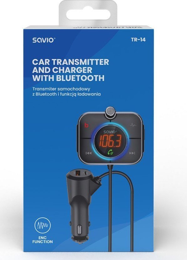 Ο πομπός αυτοκινήτου TR-14 είναι μια πολυλειτουργική συσκευή εξοπλισμένη με Bluetooth 5.0 και προηγμένη τεχνολογία ENC (περιβαλλοντική μείωση θορύβου), η οποία μειώνει τον θόρυβο καταστέλλοντας περιττούς ήχους από το περιβάλλον, γεγονός που βελτιώνει σημαντικά την ποιότητα των συνομιλιών. Ο επεξεργαστής μουσικής που χρησιμοποιείται σας επιτρέπει να αναπαράγετε τα αγαπημένα σας τραγούδια σε εξαιρετική ποιότητα. Ο πομπός διαθέτει είσοδο πολυμέσων Micro SD και έξοδο γραμμής AUX και είναι επίσης εξοπλισμένος με δύο εξόδους γρήγορης φόρτισης που υποστηρίζουν Quick Charge 3.0 και Power Delivery 3.0, χάρη στις οποίες μπορείτε να φορτίζετε γρήγορα το smartphone ή το tablet σας. Ο φωτιζόμενος δακτύλιος και η δυνατότητα επιλογής του κατάλληλου χρώματος θα κάνουν τη συσκευή να ταιριάζει τέλεια στο εσωτερικό οποιουδήποτε αυτοκινήτου.Bluetooth 5.0