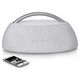 Harman Kardon Go + Play to wszechstronny przenośny głośnik Bluetooth o wysokich parametrach: wygląd Harman Kardon połączono z nadzwyczajnymi funkcjami. Jego cztery przetworniki wypełniają pokój pełnym spektrum dźwięku. Urządzenie wyposażono w akumulator pozwalający słuchać muzyki nawet do 8 godzin oraz ładować smartfony i tablety przez dodatkowe złącze USB. Aby zapewnić lepsze wrażenia słuchowe, można połączyć dwa głośniki Harman Kardon z systemem Wireless Dual Sound. Model Go + Play jest wykonany z najwyższej klasy materiałów – jego uchwyt ze stali nierdzewnej i maskownica z tkaniny stanowią atrakcyjny element dekoracyjny w domu i podkreślają styl w podróży.