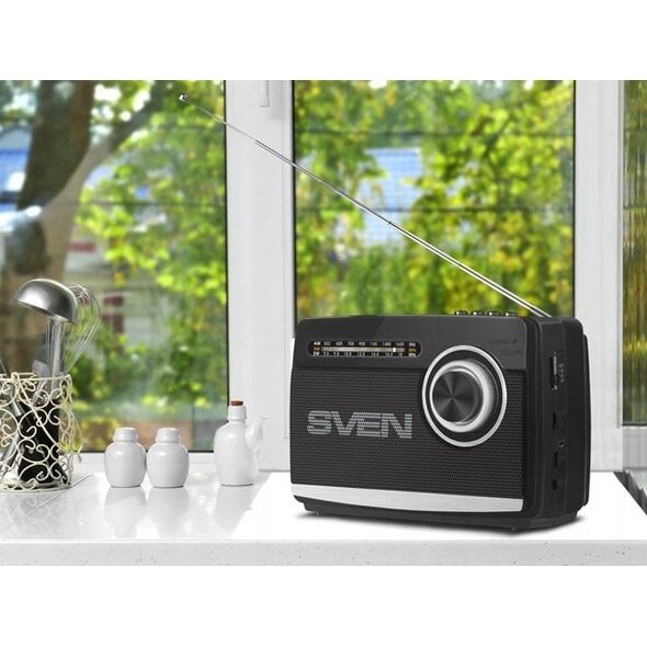 Głośnik Sven SRP-155 czarny (3W, Bluetooth, FM/AM/SW, USB, microSD, latarka, bateria)