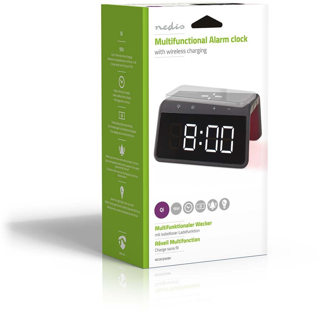 Budzik Nedis WCACQ30BK 5–15 W 2x alarm podświetlenie Czarny