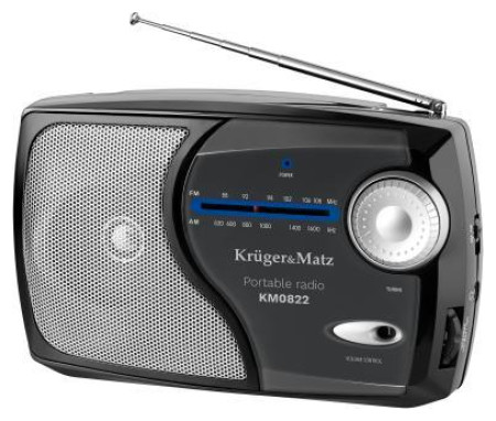 Radioodbiornik Kruger&Matz KM 822 Interesuje Cię dobre radio do domu, dzięki któremu będziesz na bieżąco z informacjami i ulubionymi audycjami? Wybierz radioodbiornik Kruger&Matz KM 822 z anteną teleskopową, która umożliwia doskonały odbiór fal radiowych na częstotliwościach FM i AM Radio KM 822 wyposażone jest w analogowy tuner AM/FM, co gwarantuje możliwość odbioru wielu popularnych stacji radiowych. Co ważne, z uwagi na czytelny panel z częstotliwościami oraz poręczne pokrętło do wyszukiwania stacji radiowych, małe radyjko Kruger&Matz jest bardzo intuicyjne w obsłudze. Jak na radioodbiorniki przenośne przystało małe radio KM 822 wyposażone jest w składany uchwyt, który ułatwia przenoszenie urządzenia, a także posiada możliwość zasilania sieciowego, jak też bateriami. Taka funkcjonalność odbiornika FM Kruger&Matz sprawia, że może służyć jako małe radio turystyczne, które bez problemu zabierzesz ze sobą na działkę, do ogrodu, a nawet na camping. KM 822 pomimo, że jest to mały radioodbiornik, w swojej kompaktowej obudowie skrywa także wyjście słuchawkowe. Dzięki niemu możesz głośno słuchać muzyki, albo ulubionych audycji i jednocześnie nie zakłócać spokoju pozostałych domowników. EAN: 5901890073134 Kod Producenta: KM0822 Waga: 0.75 kg