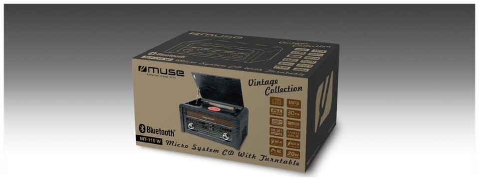 Radio Muse Muse Turntable micro system MT-115W USB port, Bluetooth, CD player, Wireless connection, AUX in, FM radio,