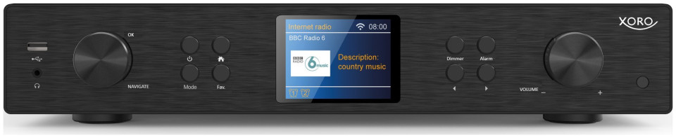 Radio Xoro Internetowe HFT 440, DAB+, FM, WLAN, BT, DLNA, UPNP Radio internetowe XORO, HFT 440, opakowanie: 2 sztuki, SAT100305, 4260427612538 Radio internetowe Odbiór DAB+ i FM Antena kierunkowa WLAN i DAB + / FM SpotifyConnect (wymagane konto Spotify Premium) Rozbudowa istniejącego systemu hi-fi lub do podłączenia aktywnych głośników budzik Stacja pogodowa