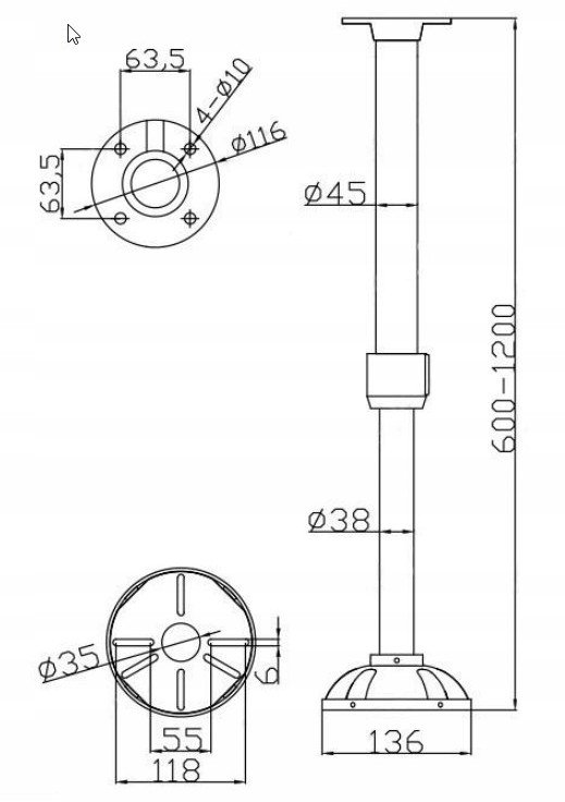 BCS-ARS120 Uchwyt sufitowy, teleskopowy BCS UNIVERSAL