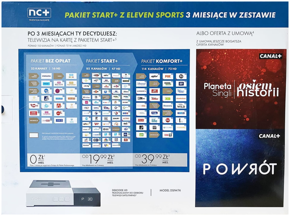 Δέκτης τηλεόρασης Canal+ CANAL+ TELEWIZJA NA KARTĘ 3mc Start Eleven Sport+ BG5
