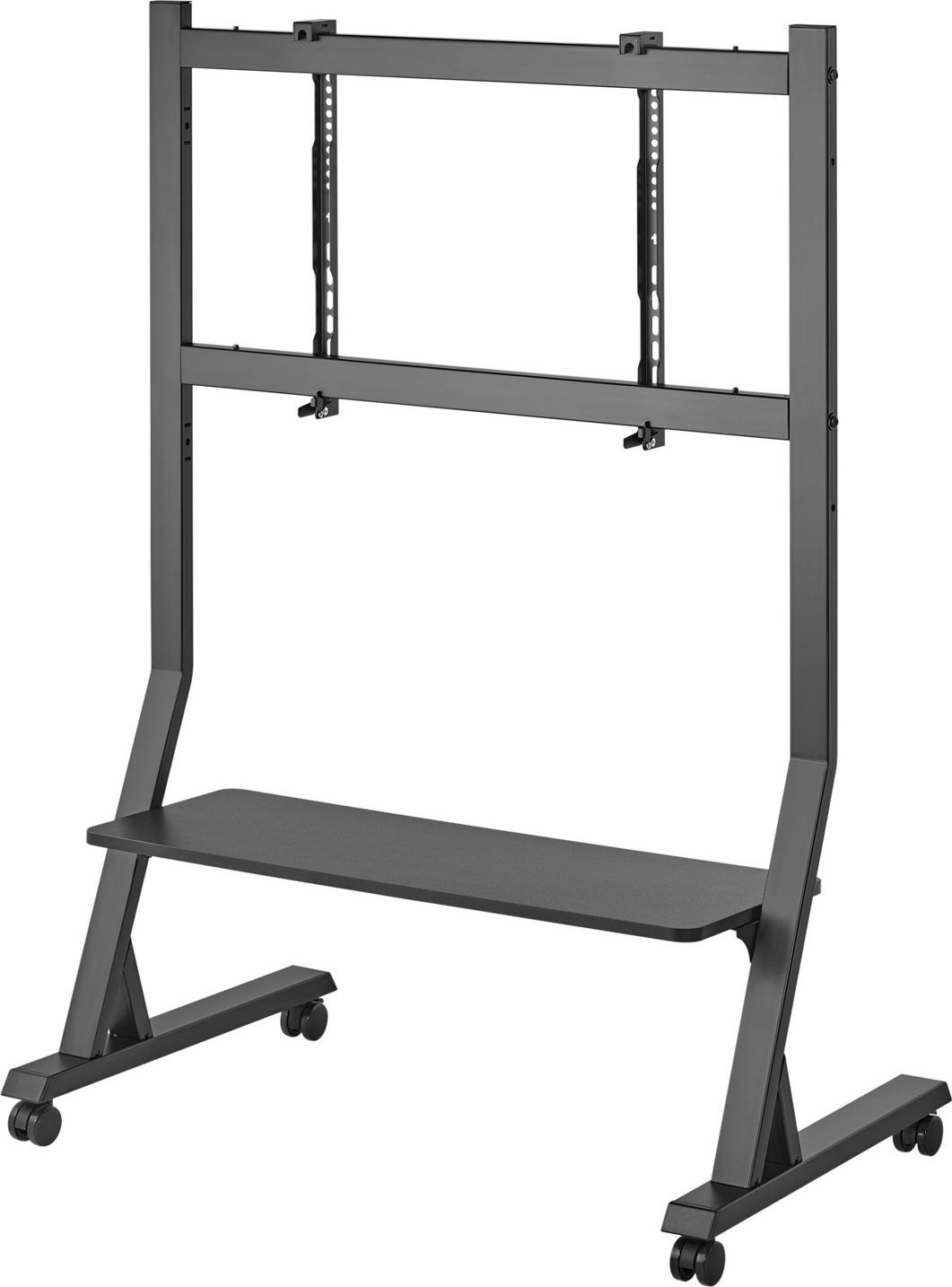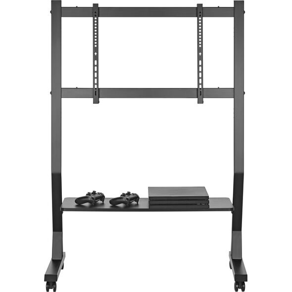Stolik na kółkach z uchwytem do TVMobilny stojak z uchwytem do telewizora 45-90" na kółkach. Posiada mocne kolumny nośne oraz system ukrywania przewodów. Idealny do sal konferencyjnych, sal wykładowych, salonu czy do pokoju telewizyjnego. Dzięki mocnym i cichym kółkom transport telewizora staje się prosty i bezpieczny.Mobilny telewizorMobilny i łatwy do przemieszczenia dzięki funkcjonalnym kółkom 360°. Stojak wyposażony jest w uniwersalny uchwyt w standardzie VESA: 100x100, 200x100, 200x200, 300x200, 300x300, 400x200, 400x300, 400x400, 600x400, 800x400 mm oraz wszystkie pośrednie.Stabilna konstrukcjaProfilowana podstawa z nogami odchodzącymi na zewnątrz zapewnia stabilność i bezpieczeństwo. Stojak posiada półkę na sprzęt taki jak dekoder, konsola czy pady. Maksymalny udźwig uchwytu to aż 60 kg, dzięki czemu możemy na stojaku powiesić praktycznie każdy telewizor dostępny na rynku.Co to jest standard VESA:VESA jest to standard określający rozstaw śrub montażowych. Standard ten określa sposób mocowania uchwytu ściennego w przypadku telewizorów oraz monitorów LED/LCD. Na rynku dostępny jest szereg różnych standardów VESA różniących się odległością otworów mocujących na tylnej ścianie urządzenia.W zestawie Stolik na kółkach z uchwytem do TV4 mocne kółkaElementy montażoweInstrukcja obsługi