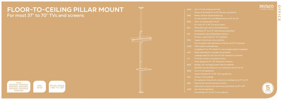 Deltaco TV laikiklis DELTACO OFFICE, tvirtinimas nuo grindų iki lubų, 37"-70", 200x200-600x400, 30kg / ARM-0455