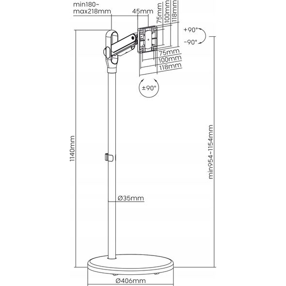 Maclean MC-970 W (84171) Wykonany z wysokiej jakości materiałów Ukryte w podstawie kółka umożliwiają łatwe przemieszczanie Sprężyna gazowa Przelotki na przewody Nowoczesny i estetyczny wygląd Maksymalne obciążenie: 10 kg Malowany metodą proszkową Kolor: biały VESA: 75x75, 100x100 mm MACLEAN – WSZYSTKO, CZEGO POTRZEBUJESZ To najwyższej jakości produkty, zdobywające coraz większe uznanie wśród klientów w Polsce. To także odpowiedź na zapotrzebowanie klientów na akcesoria RTV o wysokiej jakości przy zachowaniu umiarkowanej ceny. Zdobyta wiedza i wieloletnie doświadczenie pozwoliły nam na produkcję profesjonalnego sprzętu, który spełnia oczekiwania wymagających klientów.Mobilny stojak podłogowy na monitor/TV Maclean, sprężyna gazowa, 17"-35", 2-10kg, biały, MC-970WStojak charakteryzuje się praktyczna konstrukcją i bardzo prostym montażem. Wykonany jest z wysokiej jakości materiałów, dzięki czemu nie trzeba się martwić o jego stabilność. Malowany jest metodą proszkową co zapewnia odporność na korozje i zarysowania. Ukryte w podstawie kółka umożliwiają łatwe przemieszczanie stojaka w dowolne miejsce. Stojak wyposażony jest również w przelotki na przewody. Do zestawu dołączone są śruby, niezbędne do prawidłowego montażu oraz obrazkowa instrukcja montażu.Specyfikacja techniczna: Producent: Maclean Model: MC-970 W Kolor: biały Obciążenie: 2-10 kg Wysokość całkowita: 1140 mm Regulacja pozycji ekranu: do +90° do -90° w każdym kierunku Przelotki na przewody Sprężyna gazowa Średnica podstawy: 406 mm Standard VESA: 75x75, 100x100 mm Zestaw zawiera: Mobilny stojak podłogowy na monitor/TV Maclean MC-970W Akcesoria montażowe Instrukcja montażu kod produktu:84171 CE42TG