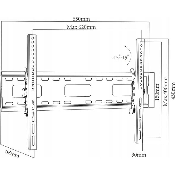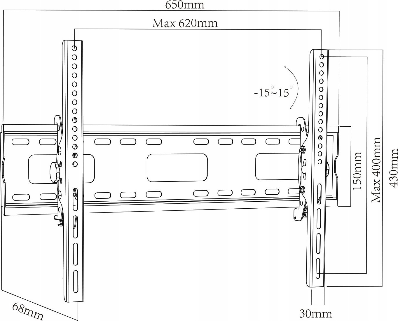 Maclean Βάση τηλεόρασης Maclean, μέγιστο VESA 600x400, 32-90", 80kg, ρύθμιση κλίσης +15°~-15°, MC-421