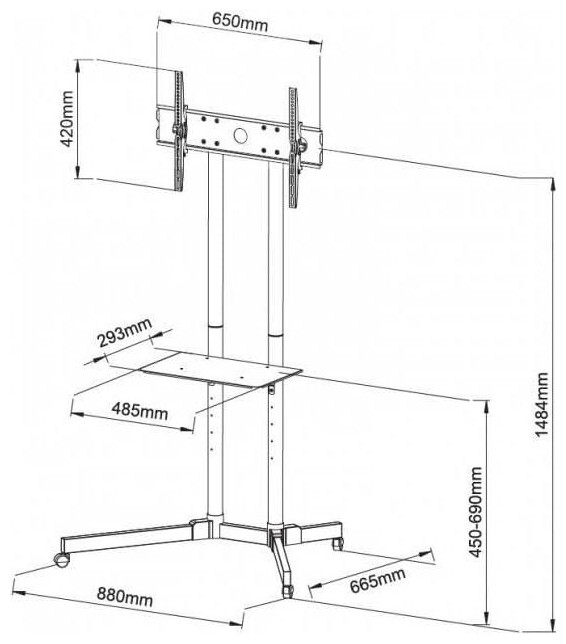 Stojak wolnostojący na kółkach Techly przeznaczony dla telewizorów LCD/LED/Plazma o wielkości 30" - 65".