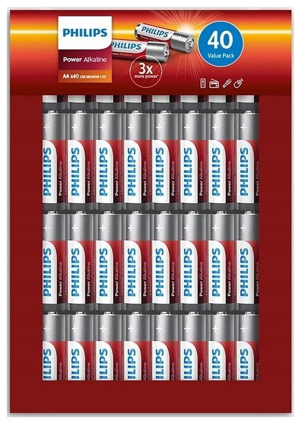 1x40 Philips Power Alkaline AA Μπαταρία Πακέτο Προσφοράς